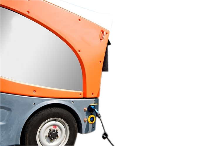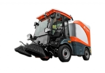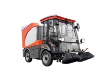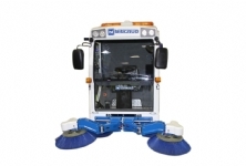 » Compact mini sweeper with accumulator has the feature to rotate from narrow angles with its’ short chassis.